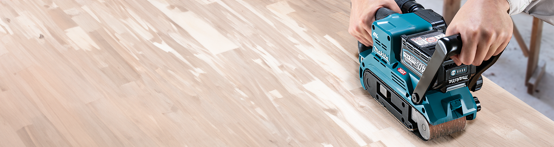 The XGT 40V Max Belt Sander delivers a maximum output power of 1,700W with the PDC1500 and 1,400W with the BL4050F. Designed for efficiency, it features a belt size of 76 x 533 mm and compatibility with vacuum cleaners for clean operation. It includes convenient functions like lock-on and lock-off, an LED job light with an afterglow feature, and variable speed control via a dial. Additional highlights are constant speed control, an anti-restart mechanism, and compatibility with the Auto Start Wireless System (AWS). Dust collection options include forced or self dust collection, while tool-less belt changes add to its user-friendly design. Weighing between 4.5 and 5.1 kg, this tool is both powerful and versatile.