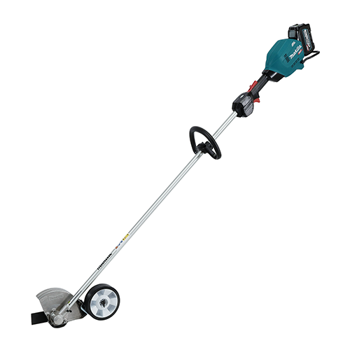 The 40V XGT Edger offers precision and control with adjustable cutting depth, allowing for tailored edging to suit various landscapes. It features a high-visibility guard for clear sight of the blade during operation, and a guard plate for added protection. The new lock-off mechanism enhances safety, while the Active Feedback Sensing Technology (AFT) ensures optimal performance by shutting down the tool in case of a sudden speed reduction. With a maximum cutting depth of 59mm, this edger is designed for efficient and reliable performance on any job.