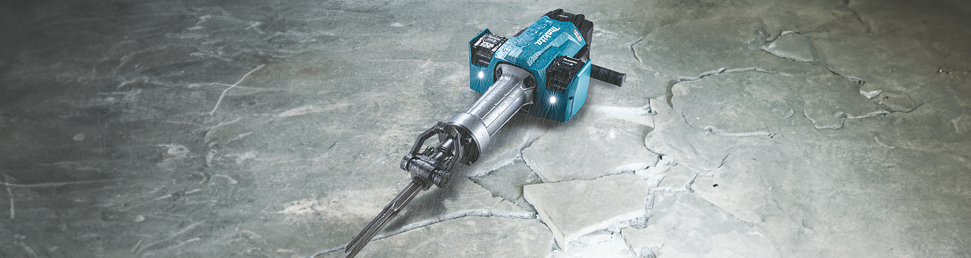 Improved work efficiency delivering high output power comparable to corded versions. This is achieved using two 40Vmax XGT batteries in series for high voltage, coupled with a high-output brushless motor. Additionally, a redesigned hammering mechanism, based on the previous HM1812 model, further enhances performance and power.