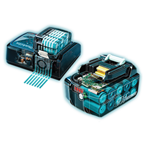 The LXT® battery powers over 325 products with consistent performance and extended runtime — even in extreme conditions. Smart charging technology communicates with the battery’s built-in chip to regulate current, voltage, and temperature, while an integrated cooling fan reduces heat for faster, more efficient charging.