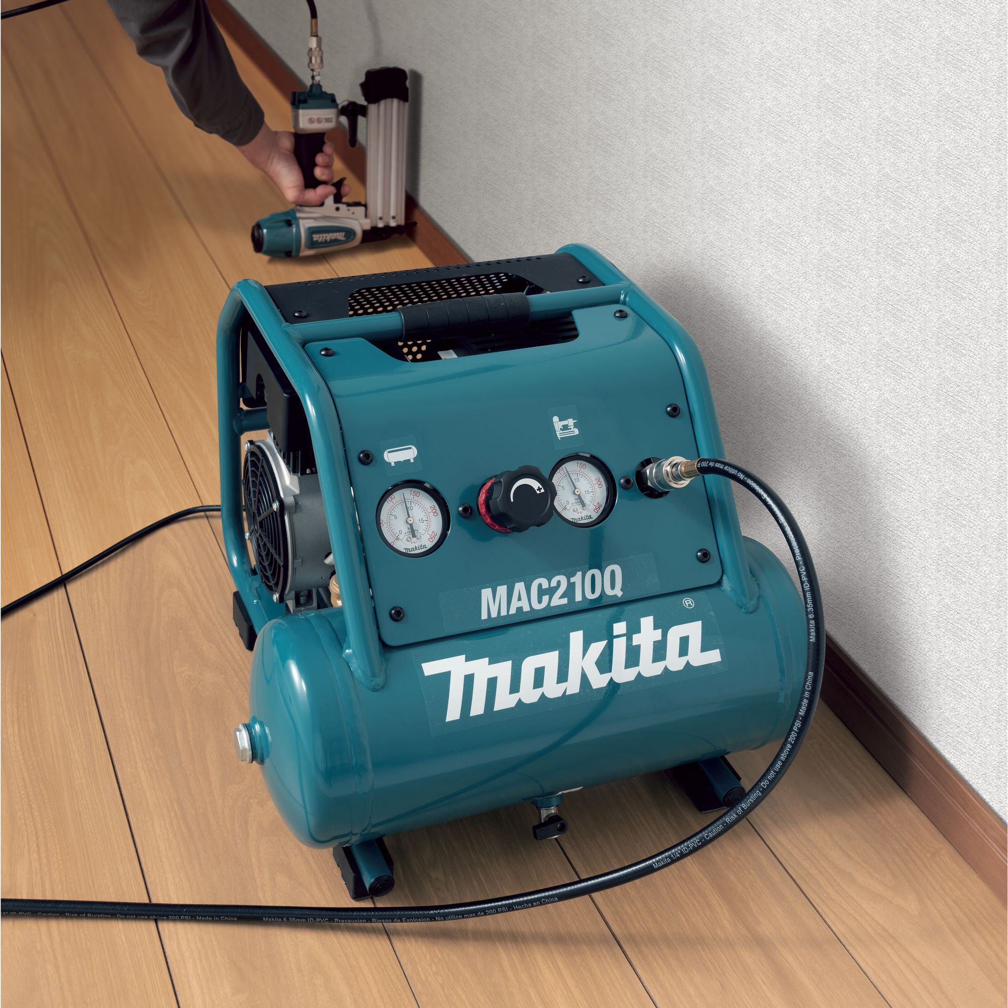The new one-HP, two-gallon, oil-free electric MAC210Q including case and base, carries all the Makita hallmarks that users rely on – faster recovery time, lower noise, longer tool life, and consistent performance.