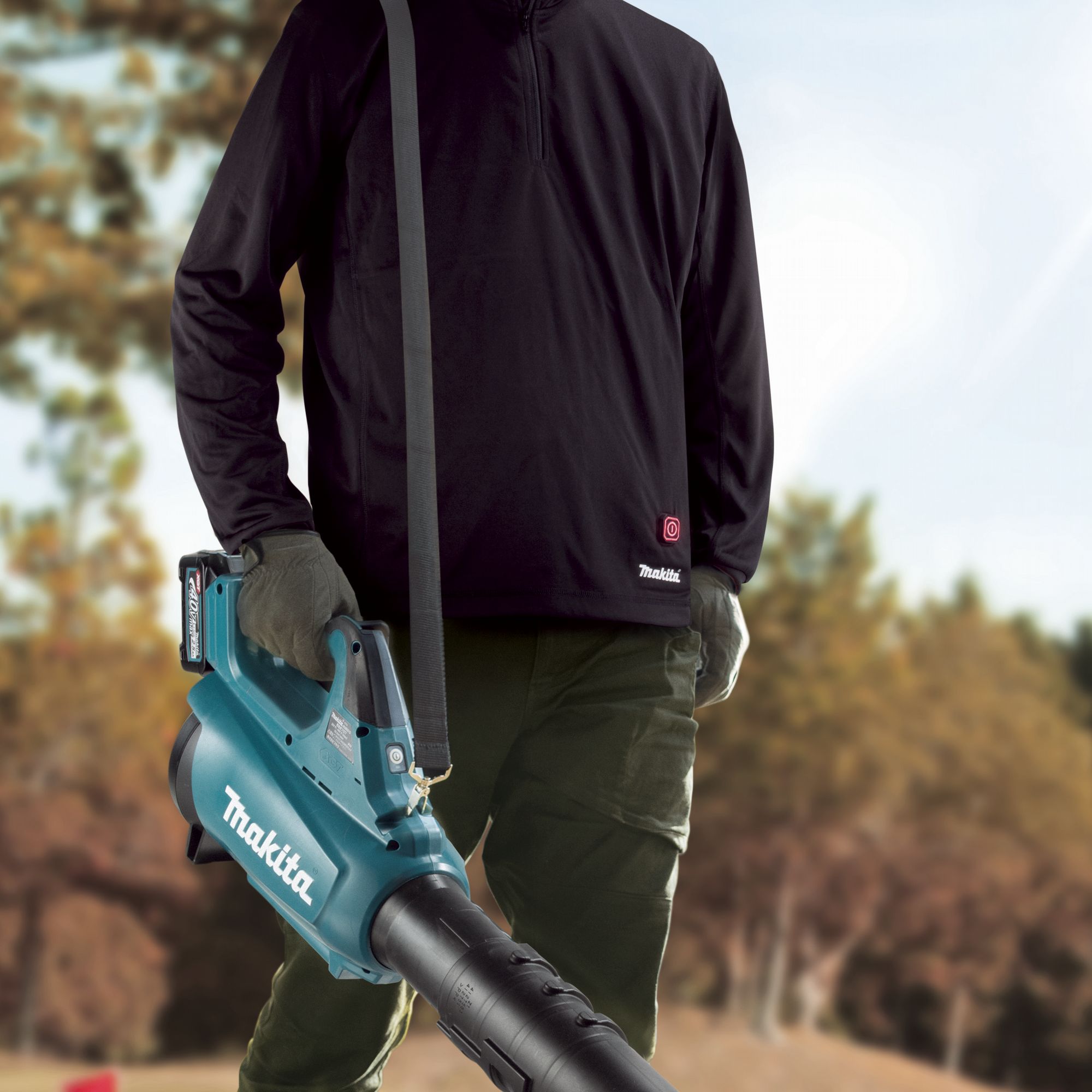 The new long-sleeved base layers can be powered by Makita’s 18V LXT or 12Vmax CXT batteries which can be placed in a battery holder attached to the waist belt.
