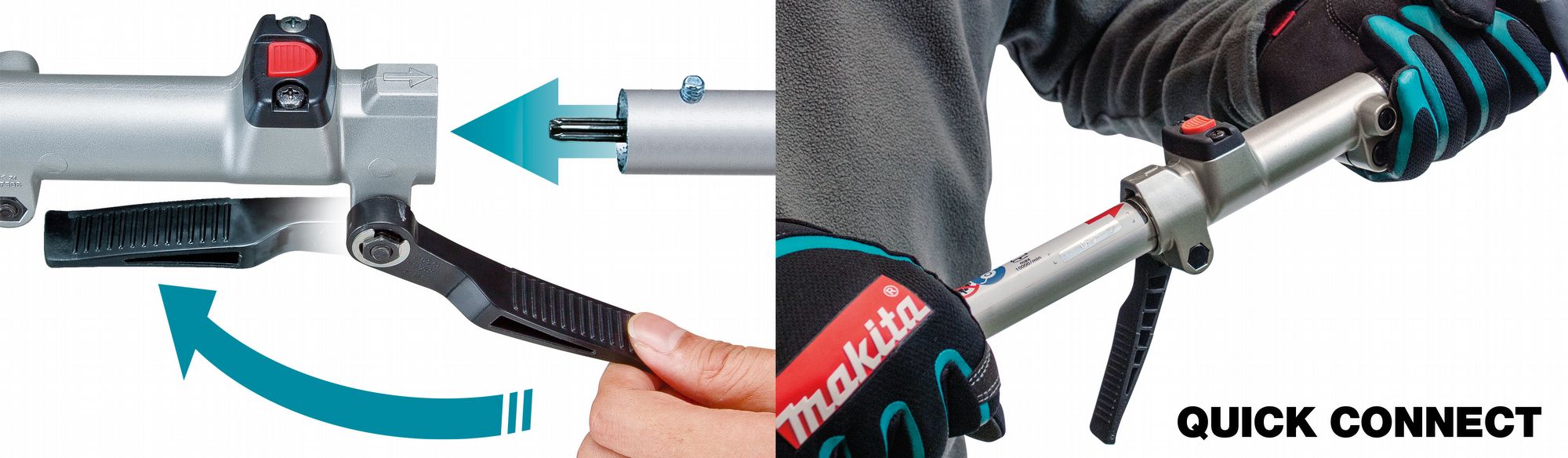 Featuring a range of optional couple shaft attachments. Including a lever-style lock system, allowing for quick, tool-free installation and replacement. This can be paired with various attachments for trimming, pruning, cultivating, and brush cutting (attachments sold separately).