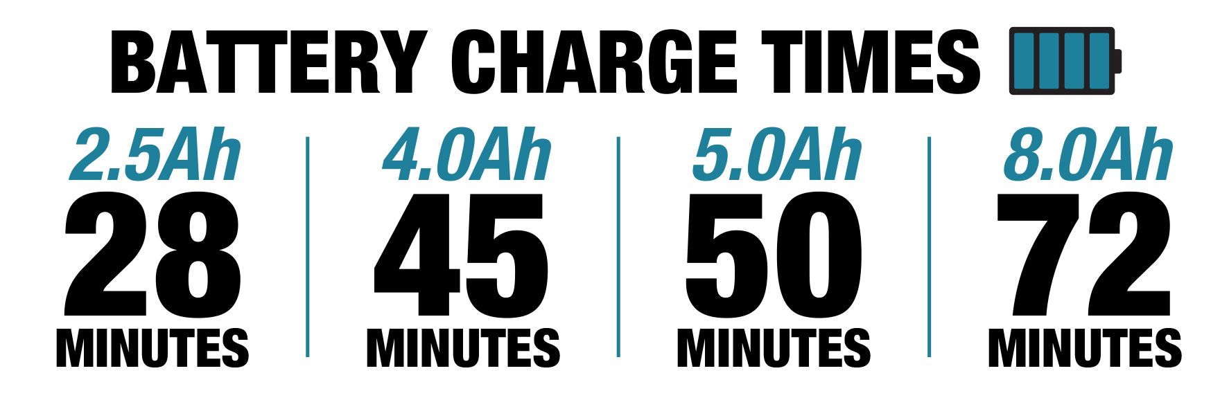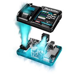 High-capacity contact surfaces with dual-fan Rapid Optimum Charging. Compatible with LXT® via ADP10 adapter.